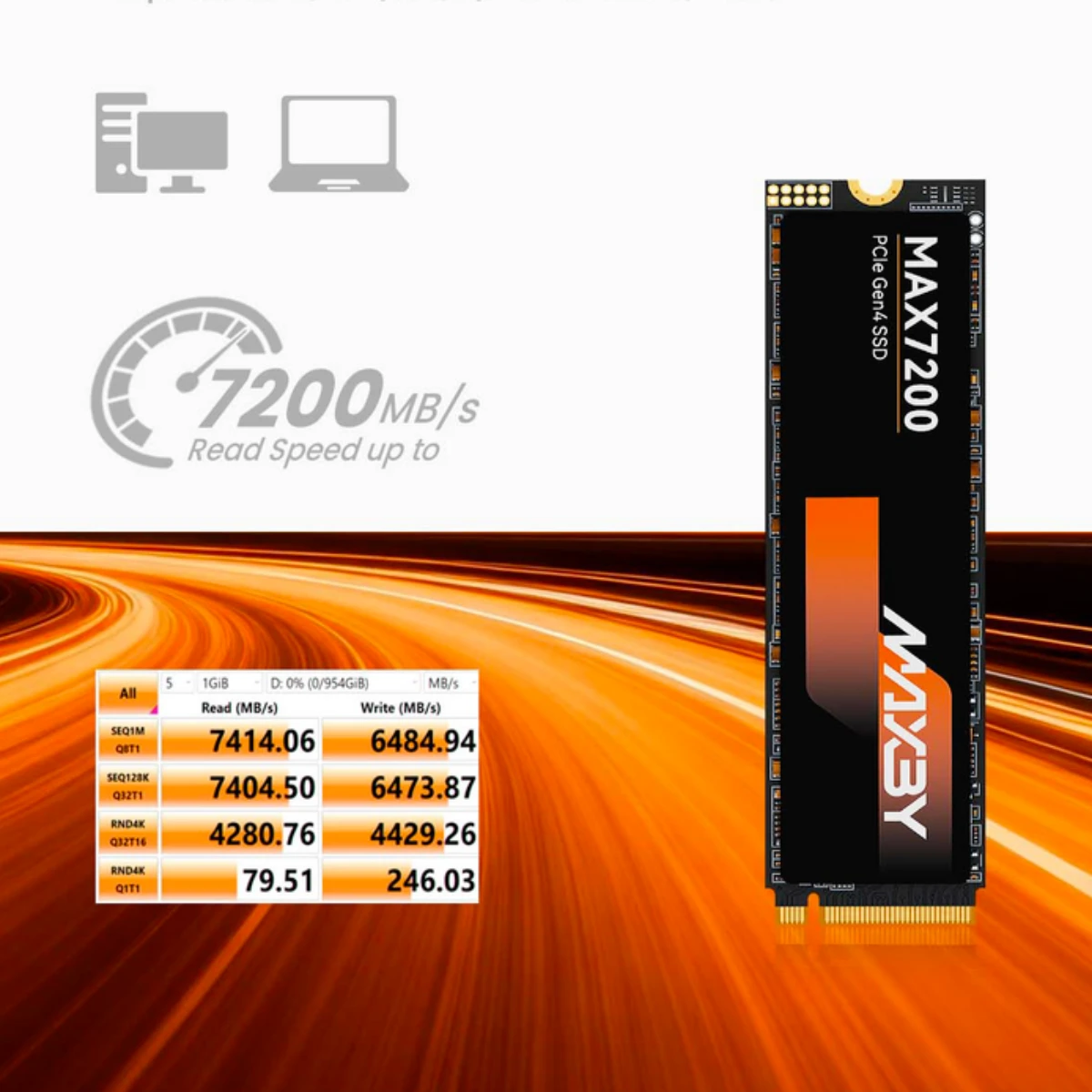 MAXBYSYNO PCIe Gen 4.0 M.2 2280 NVMe SSD 7200MB/s Read – 1 TB